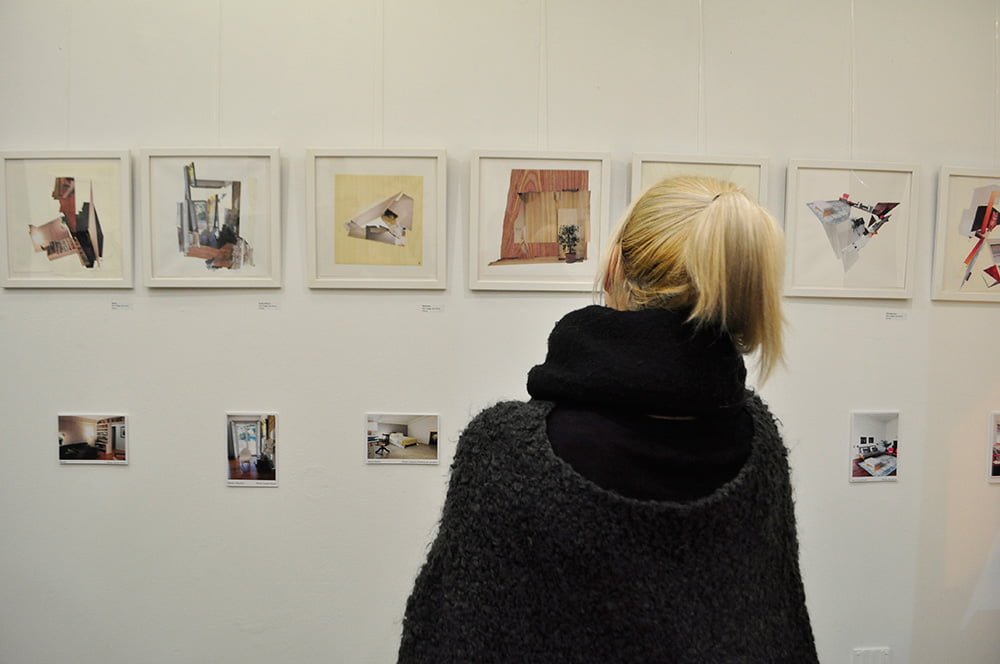 For this exhibition, we requested the public to participate by sending us a photo of an interior room within their home. These photographs were selected and manipulated directly by Nina, each forming a new unique collage, traversing the line between public and private, the usual boundaries within domestic home life are dissolved, allowing a connection to form through a shared familiarity of our beautiful, uncompromising domestic existence.