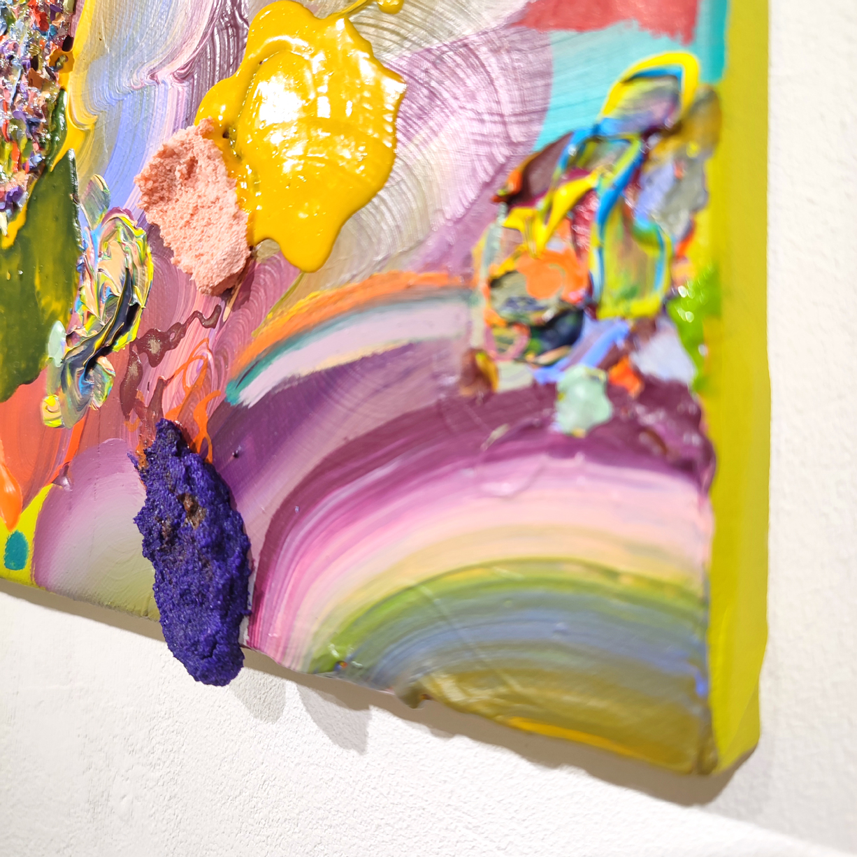 Drawing inspiration from her background in therapy, she delves into the subjective nature of human experience. Atrouni’s work invites viewers to contemplate the multifaceted nature of reality, highlighting how individual perspectives shape our understanding of the world. The artist employs a diverse range of materials, including sand, gel, and spray paint, to create works that reward close observation. The macro perspective often reveals a surprising contrast to the intricate details embedded within, fostering a captivating dialogue between the whole and its constituent parts.