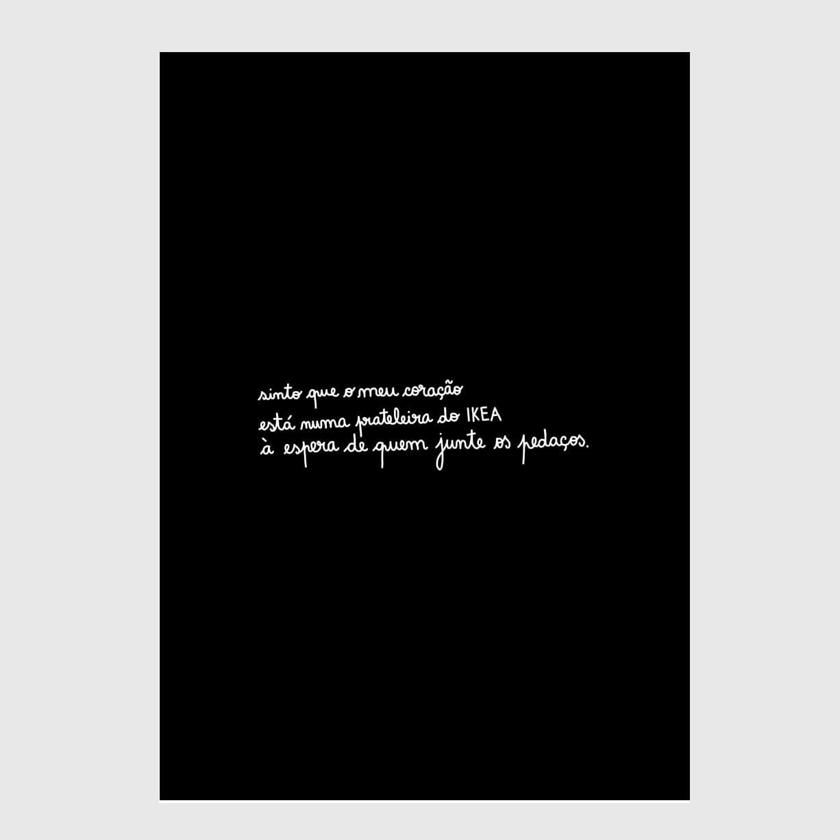 Clara Não is an illustrator and writer who lives at Bonfim, Porto. Não stands out for her irreverent illustrations, where she explores her personal experiences and ambidextrous writing. With humor in her words, and tenderness in her heart. Clara’s work focus on constructing ideas through writing, on paper, textile, windowpanes, and around town. Não likes to write on crosswalks, she sells at galleries, like Ó! Galeria and Circus Network. She was featured on several platforms, like Vogue, Público Journal and Jornal de Notícias. Works as a freelance, self-publishes, and sometimes forgets to pee.