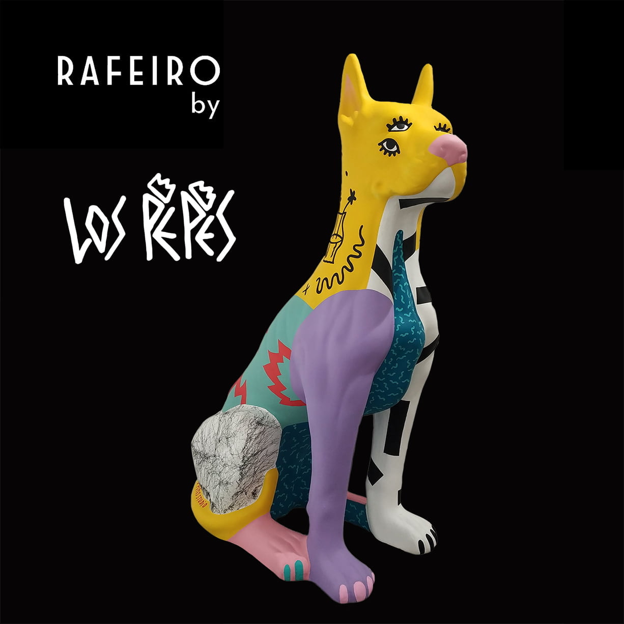 The author of the sixth Rafeiro of the litter are Los Pepes Studio. A couple of Portuguese street artists, resident in Lisbon, with a practice focused on the creation of visual stories. They use strong patterns and colors to create their aesthetic materialized through street art and paint objects.