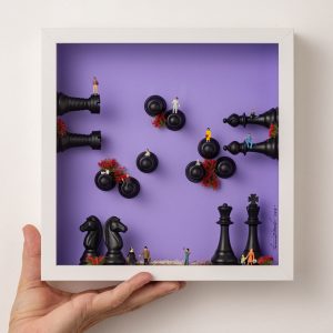 António Azevedo é reconhecido por utilizar bonecos de modelismo dentro de pequenas molduras quadrangulares. Peças que narram estórias e fazem parte do projecto “Era uma vez…”, que conta já com mais de 200 actos.
