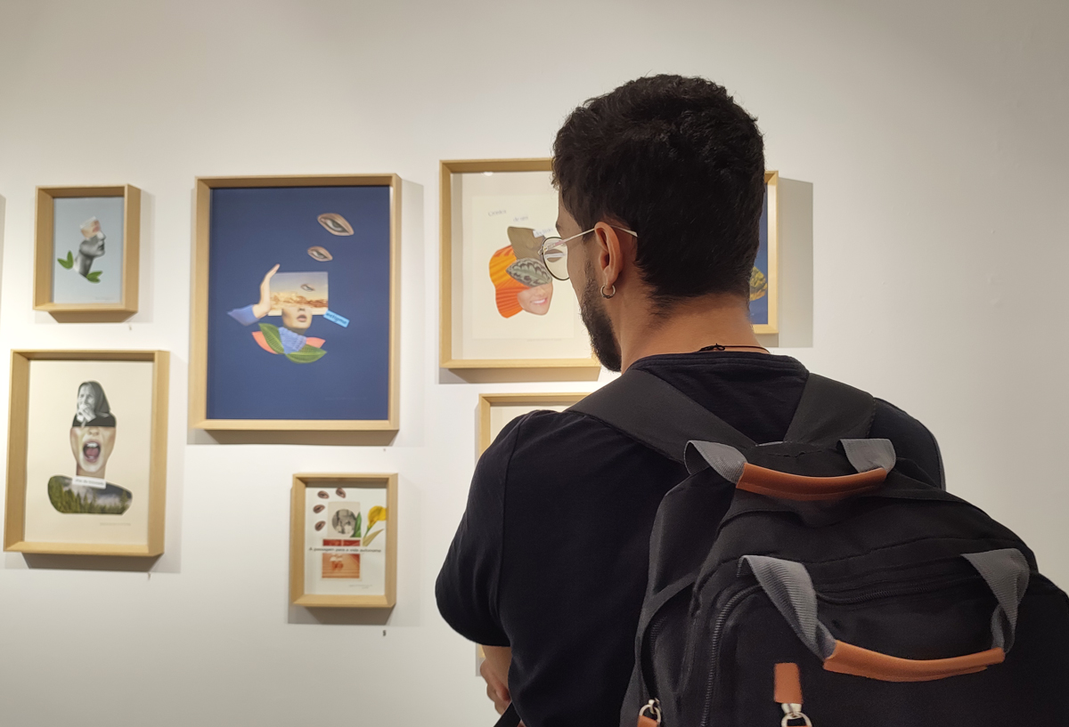 Iniciou a sua actividade artística através de técnicas de colagem analógica e do desenho, adoptando nos últimos 10 anos a colagem digital. Nesta exposição, a artista recua no tempo e volta à pesquisa manual, das melhores imagens nas revistas e a meter as mãos na tesoura e na cola.