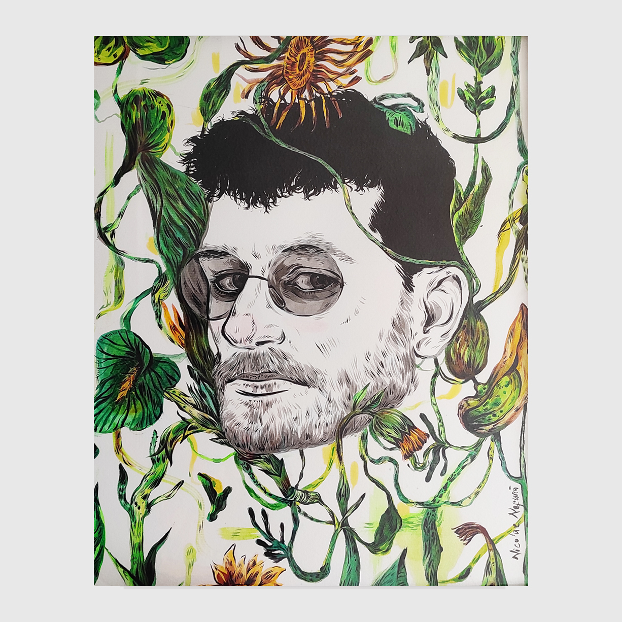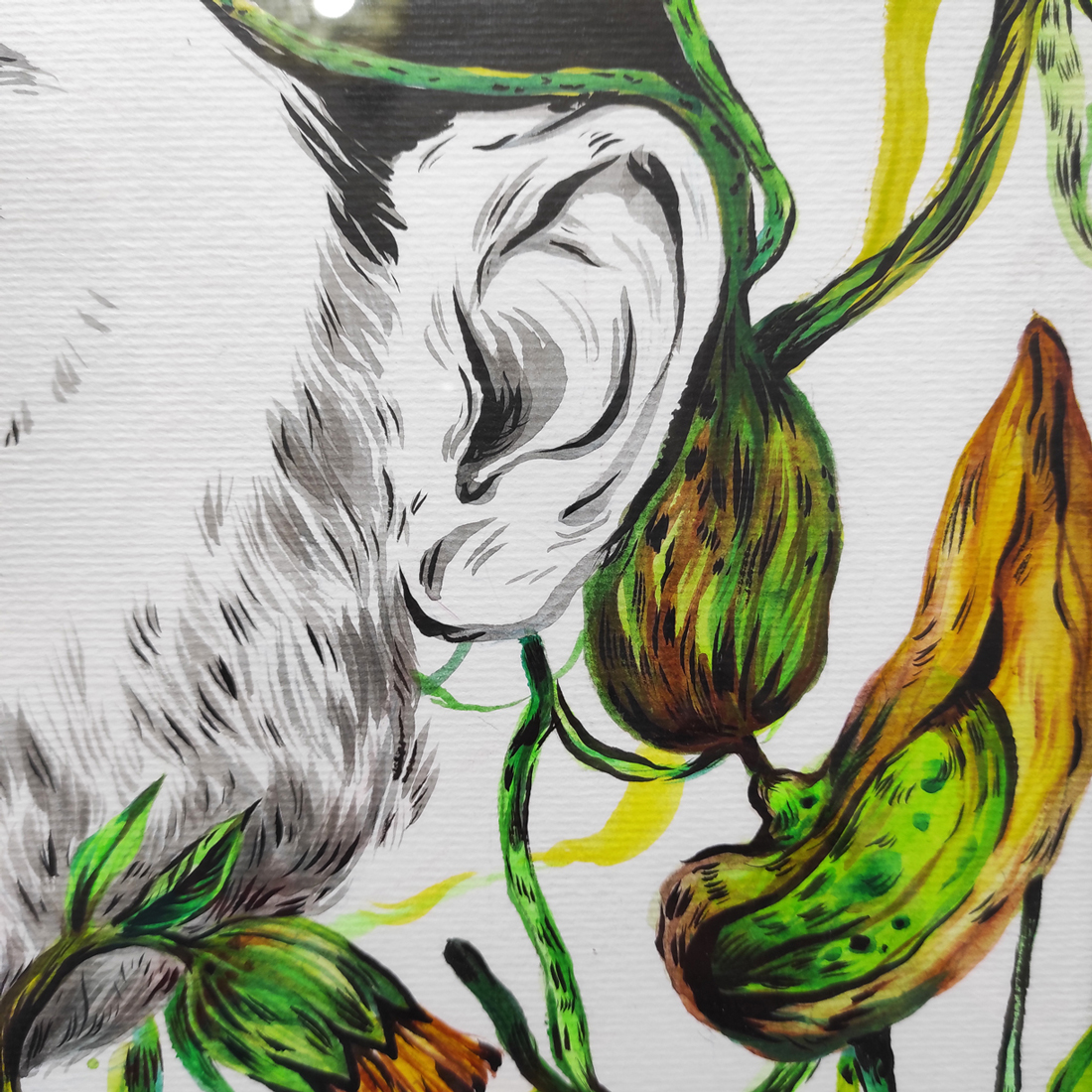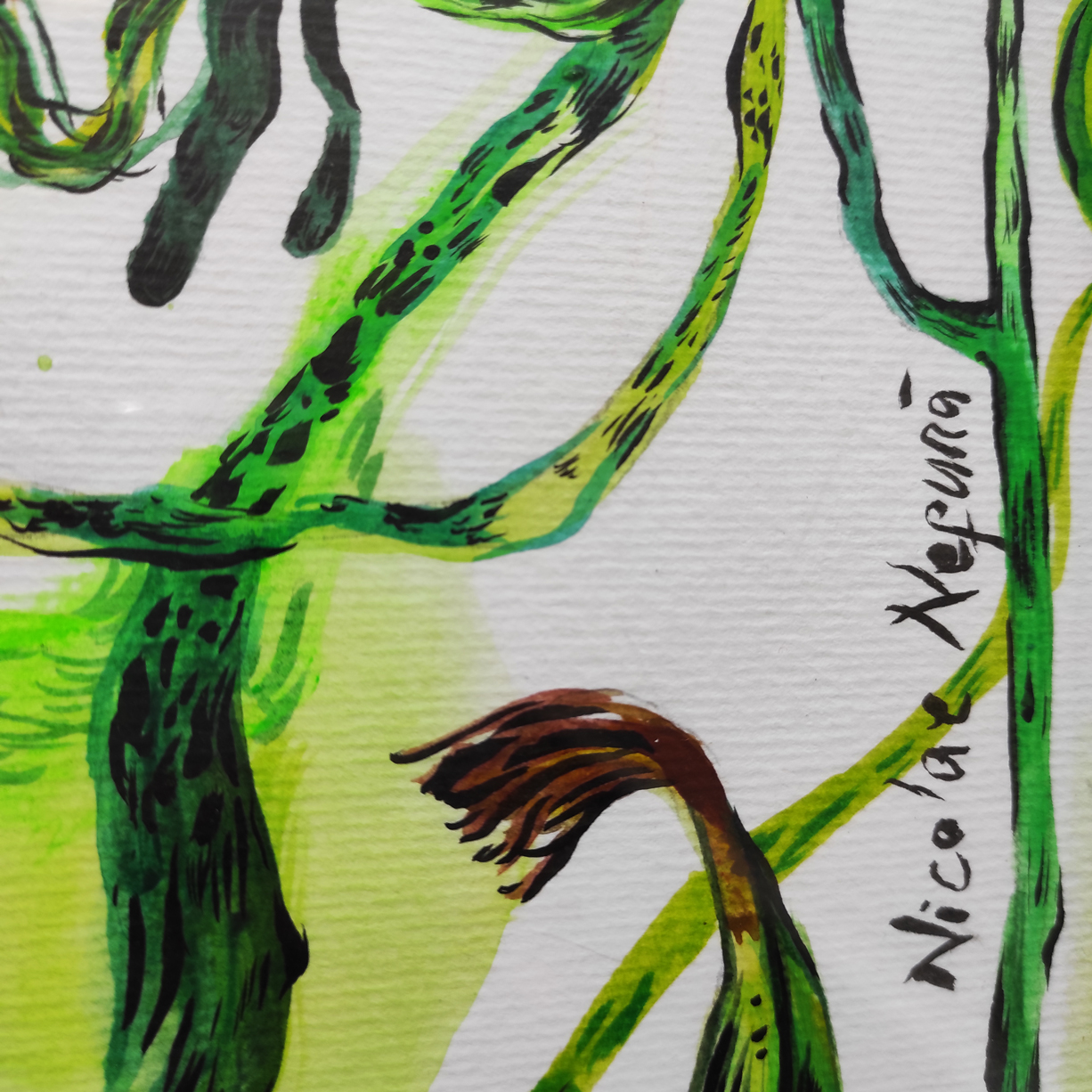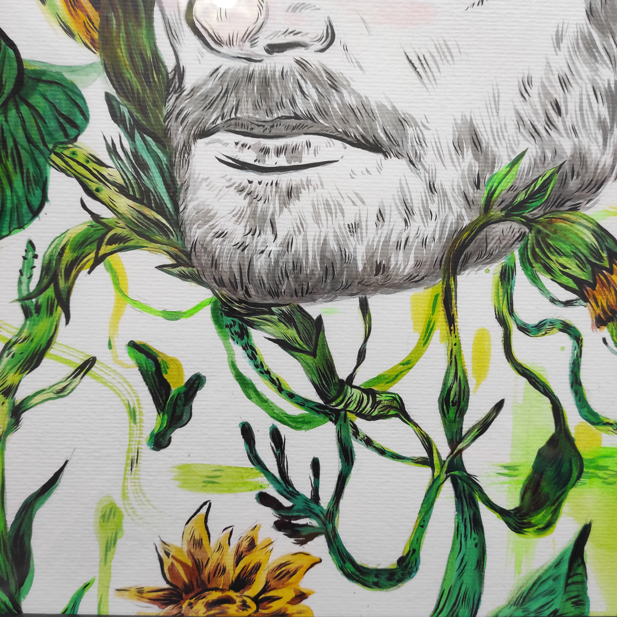 E foi o mesmo que aconteceu com este trabalho. Enquanto pintava uma versão reinventada de umas plantas, sem saber onde ia com o trabalho ou onde deveria parar. Senti que precisava de criar algo que fosse ao mesmo tempo confuso e bonito.”