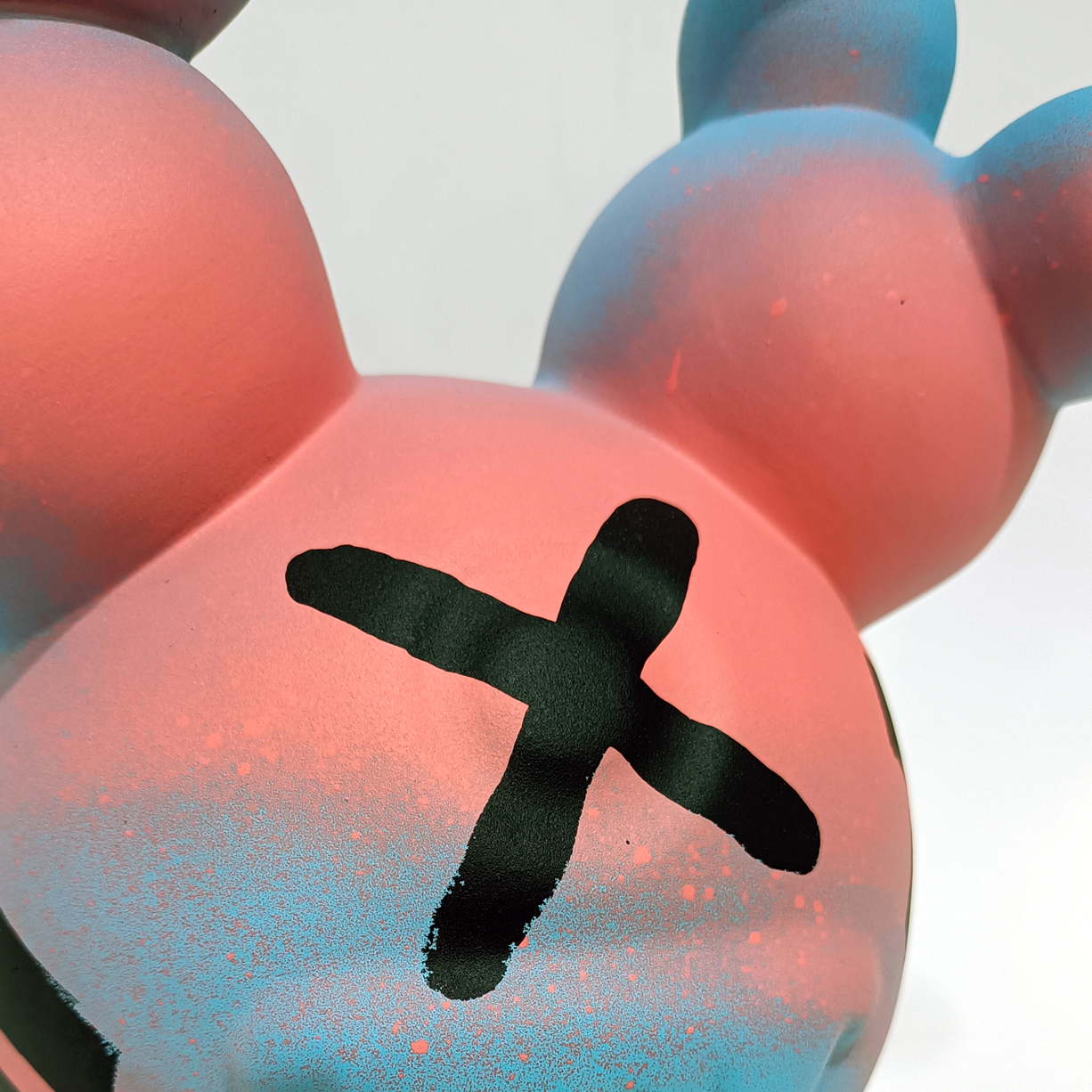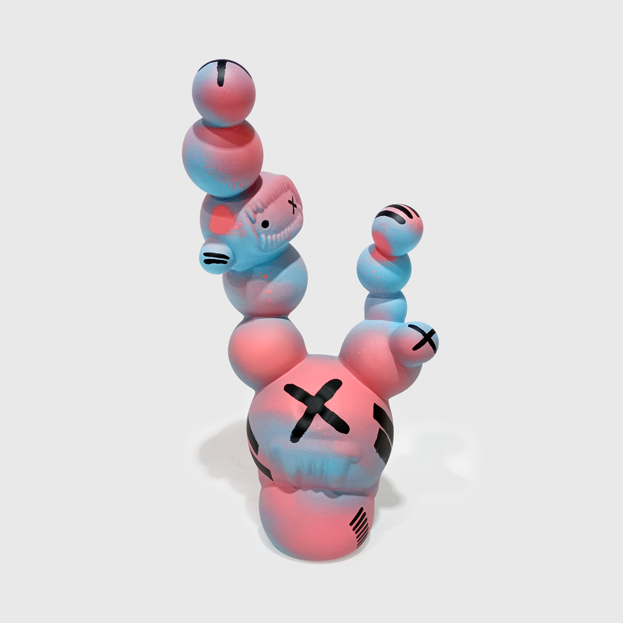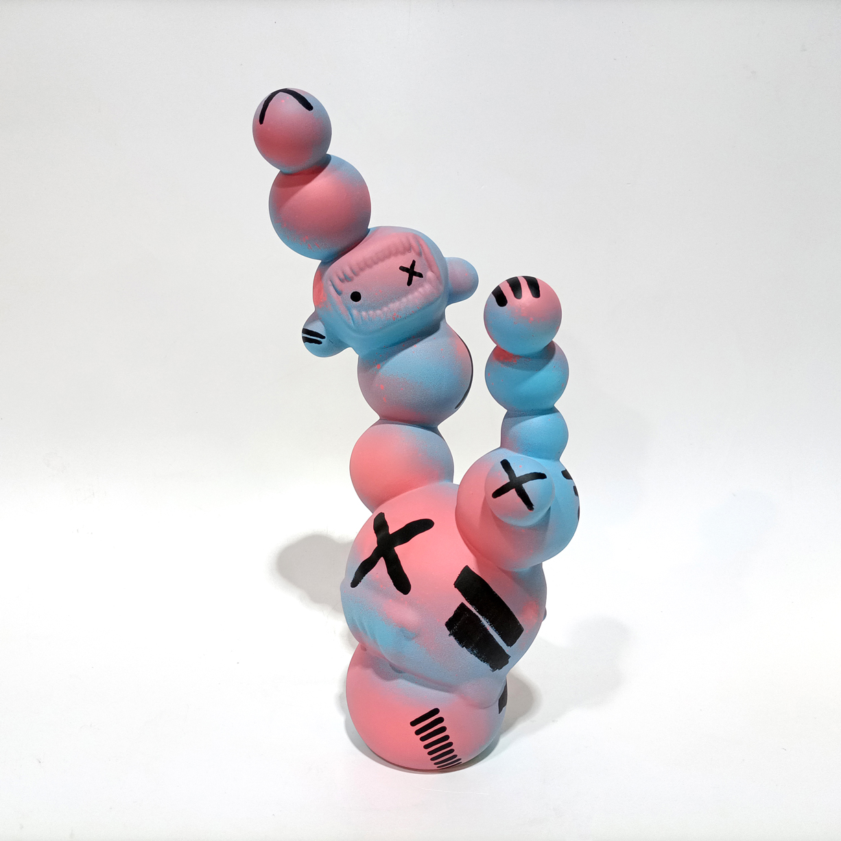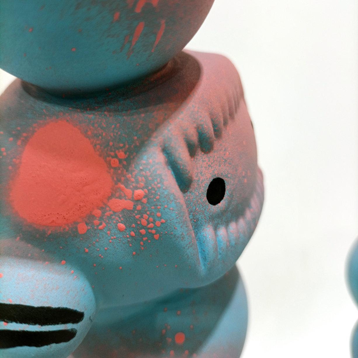 Barro branco, tintas spray e marcadores, verniz mate.