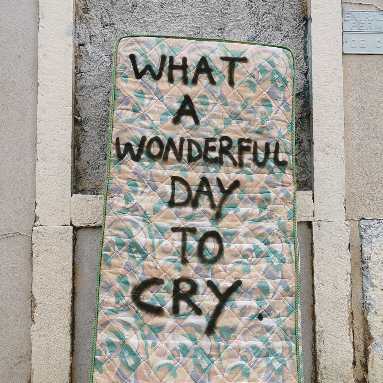 “As suas volumosas silhuetas rectangulares em vários estados de conservação, as suas capas muitas vezes únicas com belos padrões detalhados, bem como os locais onde são abandonados nunca deixam de me surpreender. Estes objectos do quotidiano carregam associações. As nossas vidas esfregaram-se neles. O suor, o sangue, as lágrimas e outros fluidos corporais tornaram-se parte do seu tecido. Um colchão é muito mais do que uma cama onde dormimos. Fazemos amor na cama, lemos na cama, comemos na cama, vemos televisão na cama, sonhamos na cama, falamos na cama, choramos e rimos na cama. Somos concebidos na cama, nascemos na cama, morremos na cama. Os colchões são um pequeno mundo próprio, os nossos espaços privados. Quero dar voz a estes colchões. Eles têm tantas coisas para contar”.